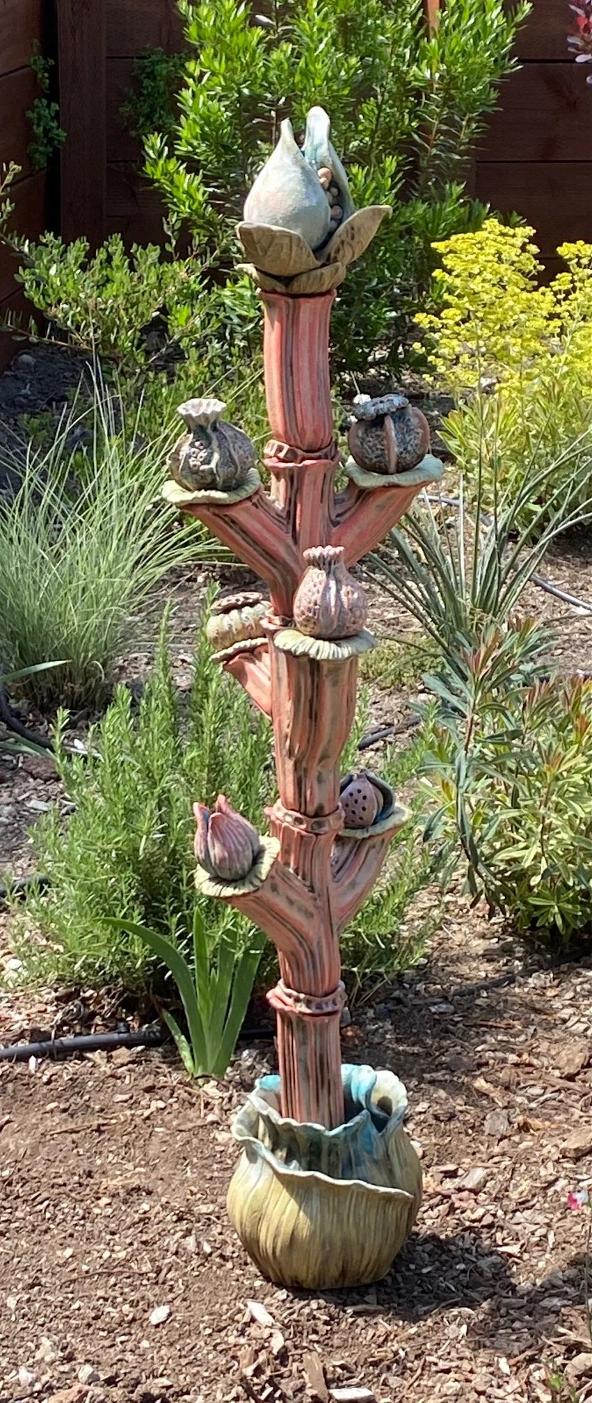 Bird Totem with Planter by Ellen Sachtschale - 48” tall